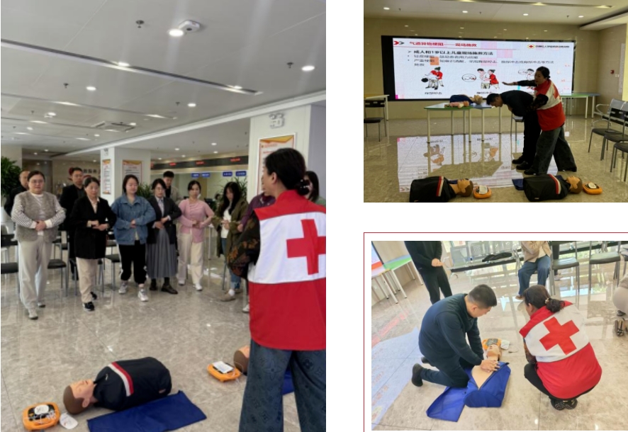 活动现场,来自红十字搜救队的专业老师详细介绍了心肺复苏操作流程、AED设备规范使用、气道异物梗阻急救等自救互救知识,强调“黄金4分钟”对提高急救人员存活率的重大意义。通过生动案例分析,进一步强化了大家对应急救护知识的认知。在实践操作环节,老师对如何判断病人心跳呼吸停止、心肺复苏操作步骤等内容进行了详细的讲授和演示。通过分组练习、反复磨合,力求每个动作精准到位,充分展现出对生命救援技能学习的严谨态度。参与人员认真听讲、主动思考、积极参与,在讲师的耐心指导下逐一进行模拟现场心肺复苏体验并完成考试。