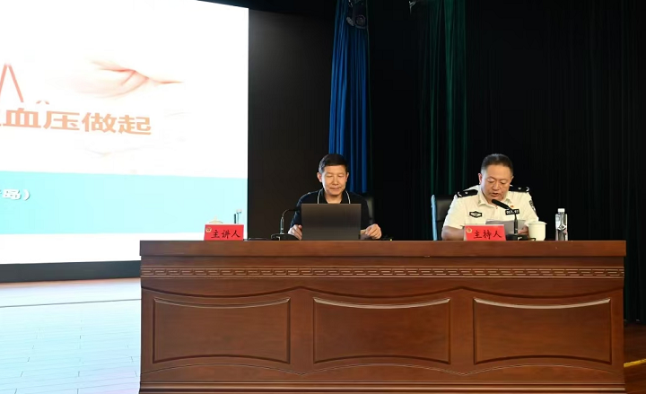 活动现场,赵翠萍主任深入浅出地带来了“脑卒中,知多少”专题讲解。赵主任从脑卒中的定义、高危因素、早期识别到关键的预防策略以及紧急救治的黄金时间窗,进行了系统阐述。她特别强调了公安干警因工作压力大、作息不规律更需警惕脑卒中风险,并传授了实用的日常预防与快速识别技巧。紧随其后,姚桂华主任聚焦基础健康指标,主讲了“健康生活从关注血压做起”。姚主任详细解析了被称为“沉默的杀手”高血压的危害性、科学测量血压的正确方法,并结合公安职业特点,重点讲解了如何在紧张工作与值班备勤中有效管理血压,包括合理膳食、规律作息、科学减压以及坚持用药的重要性。他倡导每位干警都应成为自身健康的“第一责任人”,从关注和管理血压开始筑起健康防线。
